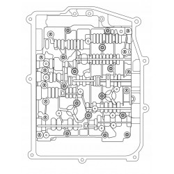 Demontaż mechatorniki:Aby zdemontować zespół korpusu zaworu, najpierw odłącz czujnik prędkości bębna sprzęgła od jednostki sterującej. Następnie wyjmij śrubę mocującą TRS z górnej części obudowy. Śruby oznaczone znakiem X na rysunku po prawej stronie można teraz usunąć. Po wyjęciu śrub unieś sterownik do siebie. W razie problemów służymy pomocą. |